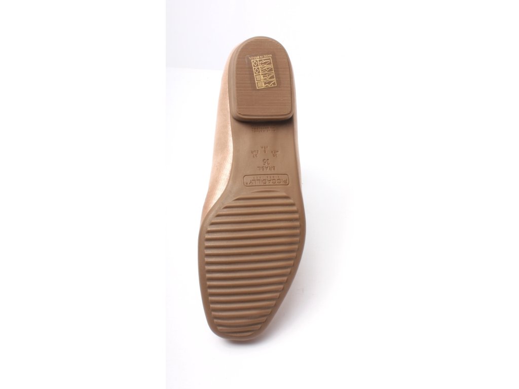 Dámská obuv brazilské značky Piccadilly je velmi luxusní a komfortní. Všechny modely této značky jsou vybaveny gelovými opatky, které chrání paty před otlaky. Modely na vysokých podpatcích mají anatomicky tvarované stélky a gelovou vložku zajišťující pohodlnou chůzi. Stélky jsou vyrobeny propracovaným systémem kanálků a drážek, které přivádějí vzduch po celé délce chodidla, rovnoměrně rozvádějí tlak na chodidlo a tlumí silné nárazy při došlapu, tím chrání klouby dolních končetin a páteř. Stélky jsou antibakteriální a antimikrobiální a zabraňují vznikání nepříjemných pachů. Obuv je vybavená gelovými opatky, a proto je nutné při obouvání používat lžíci na obuv.