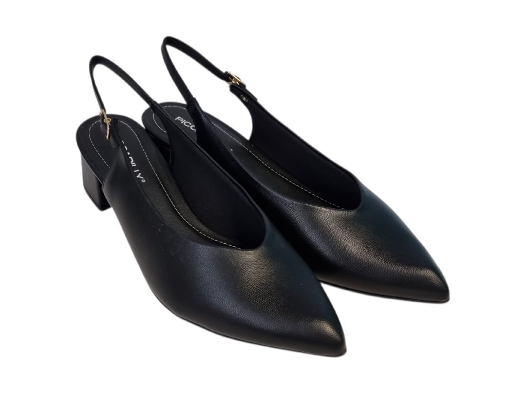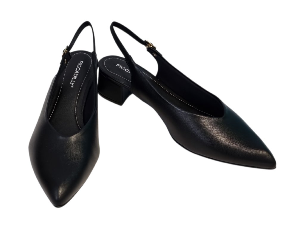 Elegantní dámské lodičky značky Piccadilly jsou synonymem pohodlí a nadčasového stylu. Hladký černý svršek působí luxusně a dokonale doplní formální i společenské outfity. Model má volnou patu a nastavitelný pásek se sponou, který zajistí jistotu při chůzi i dokonalé přizpůsobení noze. Špičatý tvar působí jemně a elegantně, zatímco nízký 3 cm podpatek poskytuje potřebnou stabilitu a komfort i při celodenním nošení.