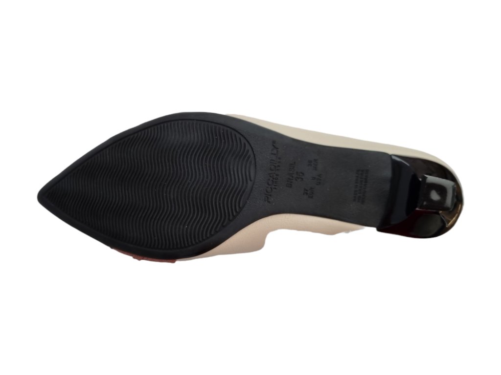 Dámské lodičky brazilské značky Piccadilly s otevřenou patou a ozdobou na špičce.