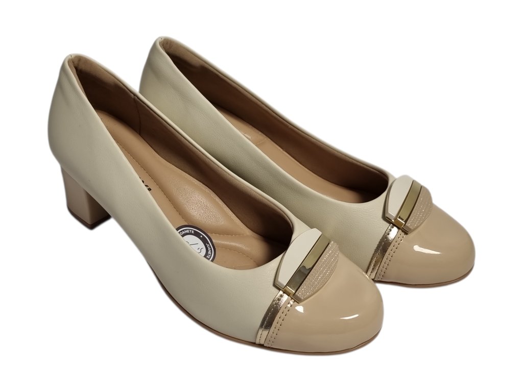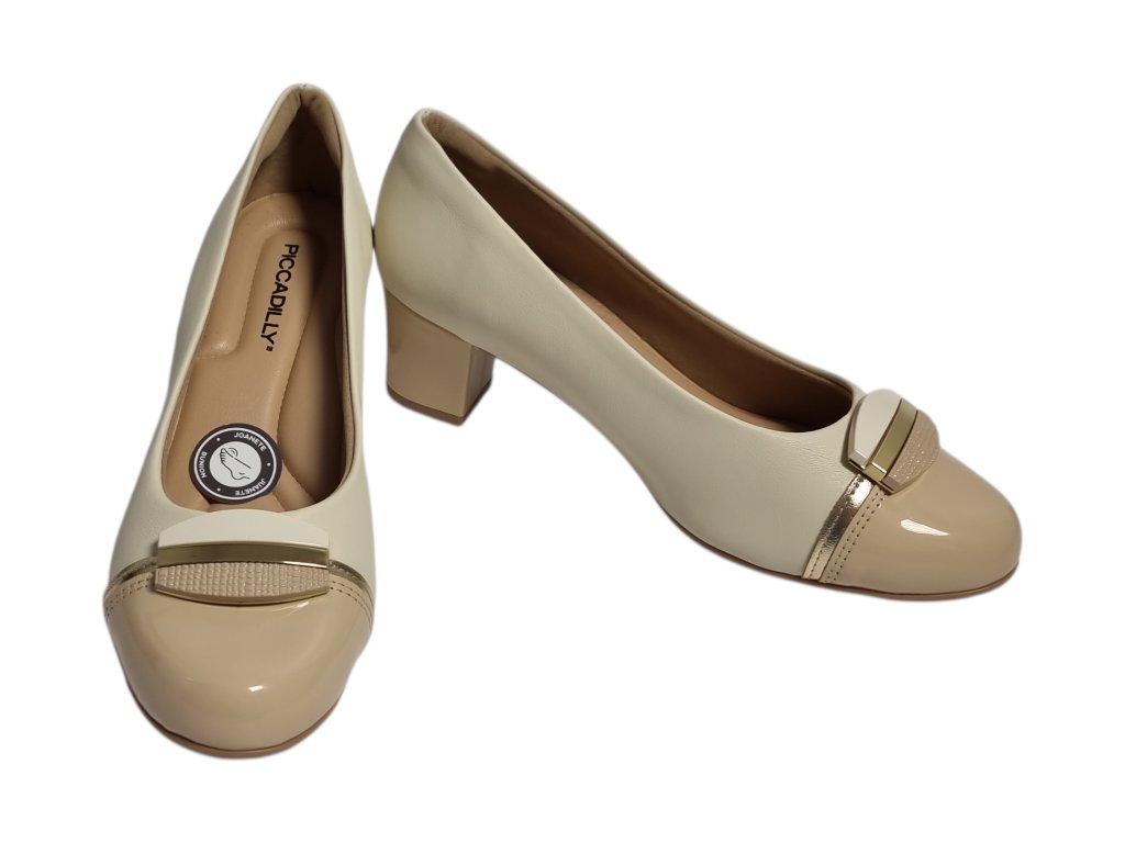 Dámské lodičky brazilské značky Piccadilly řady Joanete na podpatku, kombinují eleganci s maximálním pohodlím. Speciální konstrukce v oblasti nártu je rozšířená a flexibilní, díky čemuž se přizpůsobí chodidlu a poskytuje úlevu při hallux valgus (vbočeném palci) i dalších deformitách prstů.