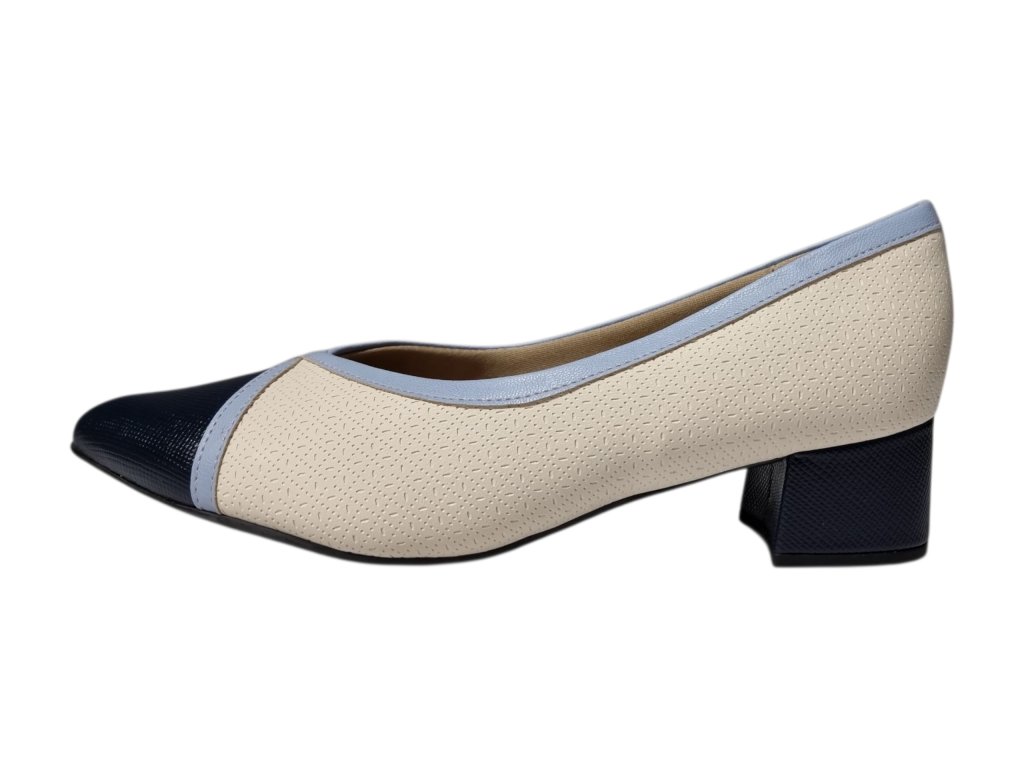 Dámské lodičky brazilské značky Piccadilly řady Joanete na podpatku, kombinují eleganci s maximálním pohodlím. Speciální konstrukce v oblasti nártu je rozšířená a flexibilní, díky čemuž se přizpůsobí chodidlu a poskytuje úlevu při hallux valgus (vbočeném palci) i dalších deformitách prstů.
