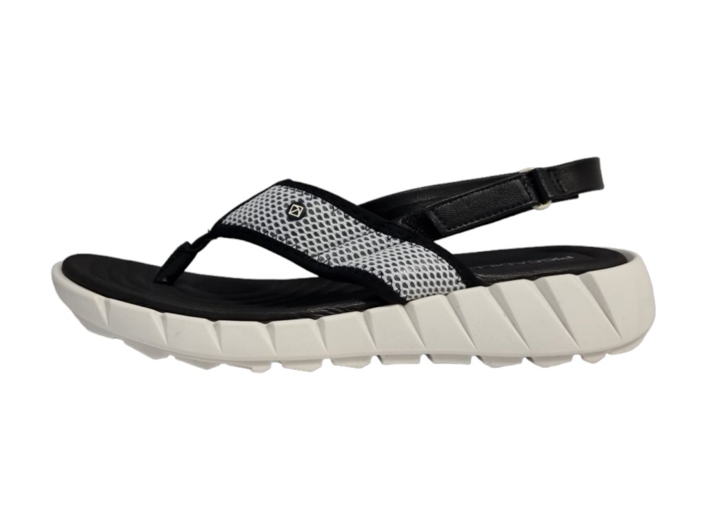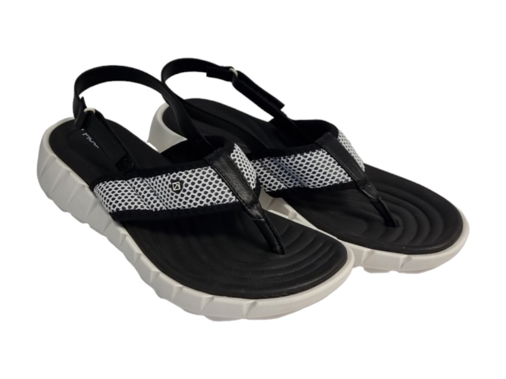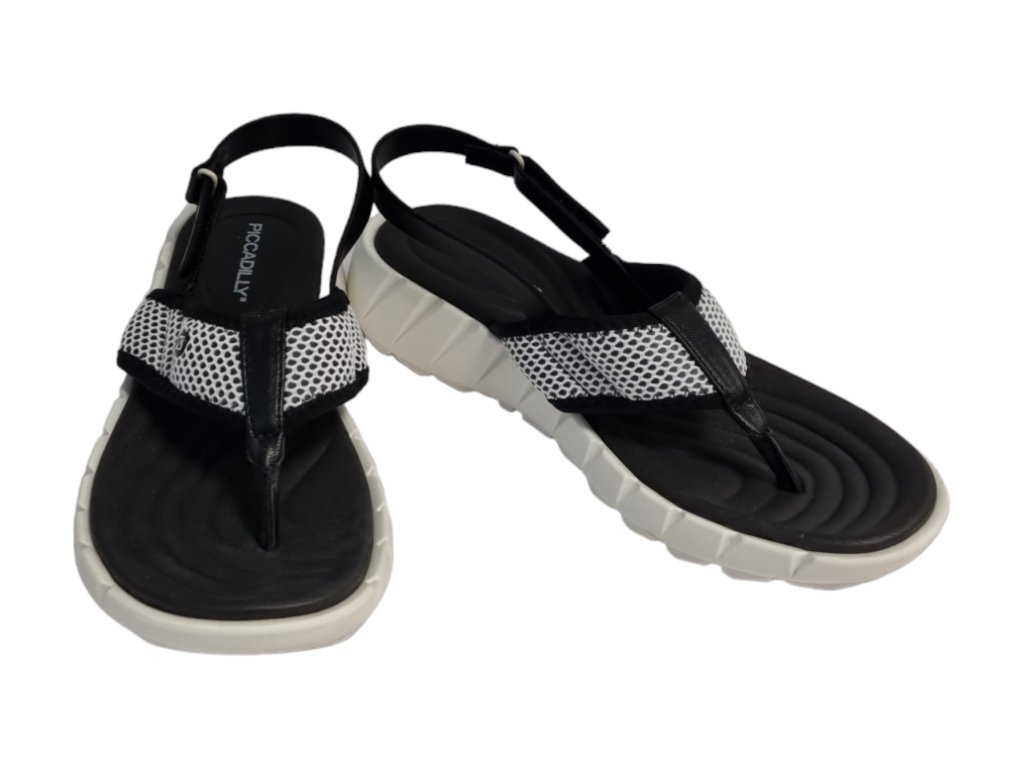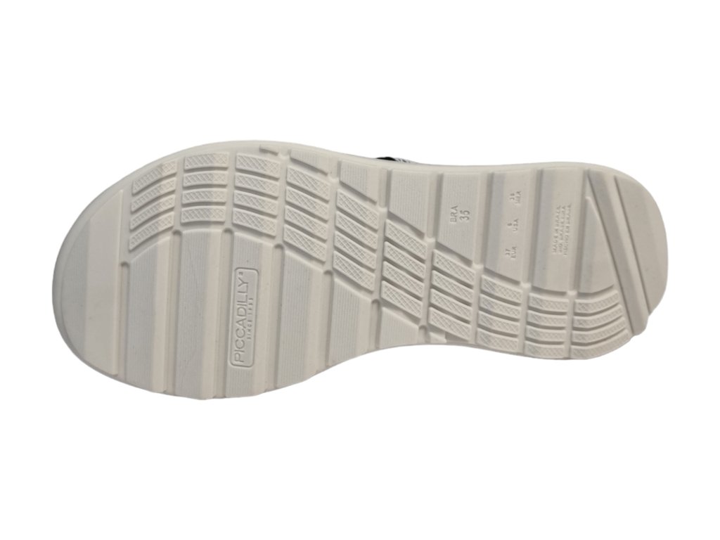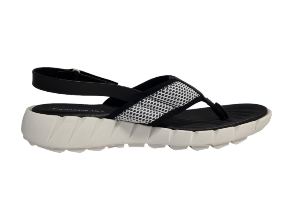 Ultra pohodlné dámské sandály brazilské značky Piccadilly v černé barvě s bílou podešví nastavitelným páskem přes patu.