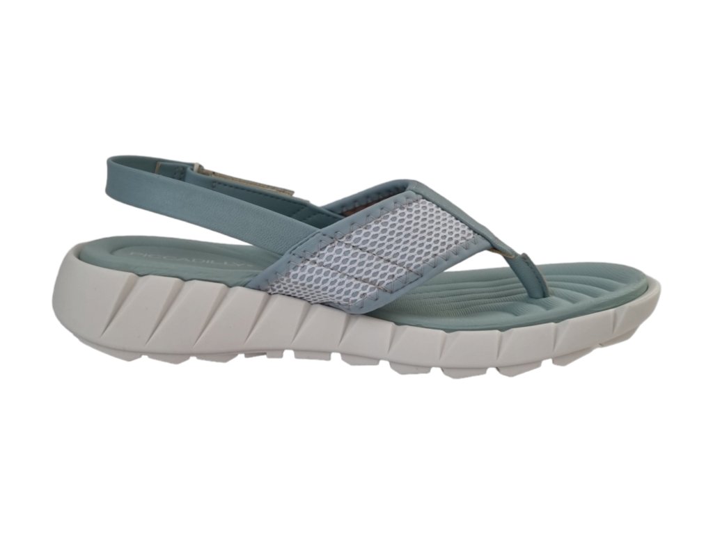 Ultra pohodlné dámské sandály brazilské značky Piccadilly v bleděmodré barvě nastavitelným páskem přes patu.