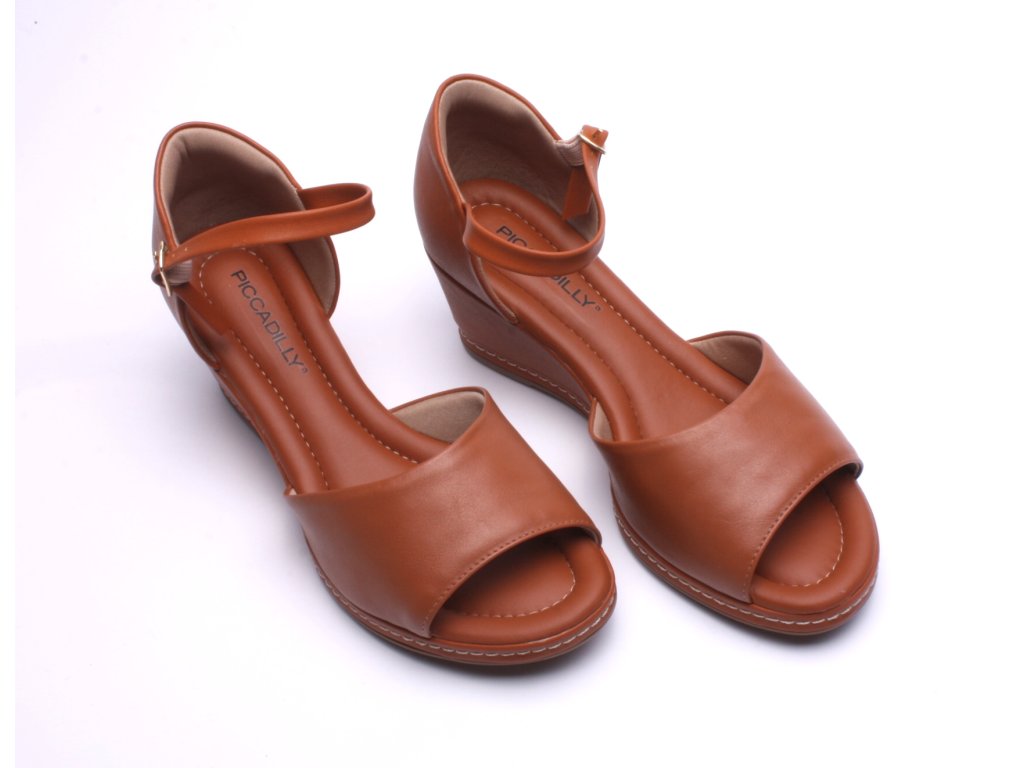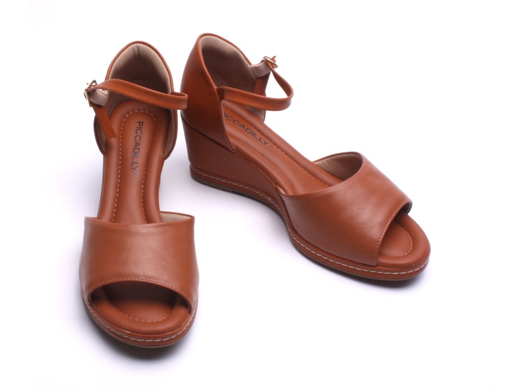 Dámské sandály Piccadilly na klínku s nastavitelným páskem kolem kotníku.