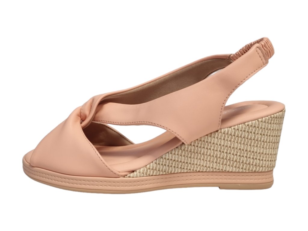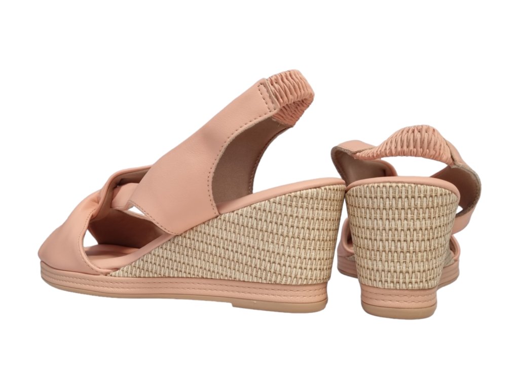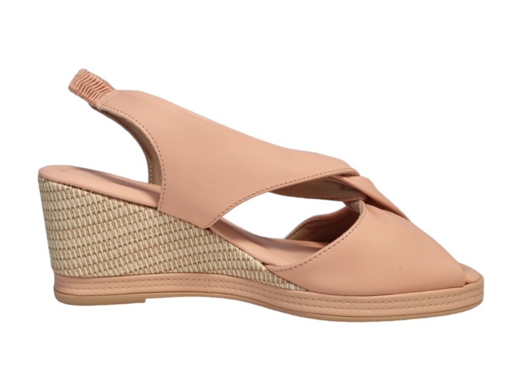 Letní sandály na klínku s páskem přes patu na potaženou gumu.
