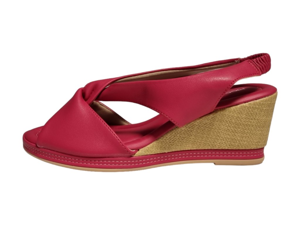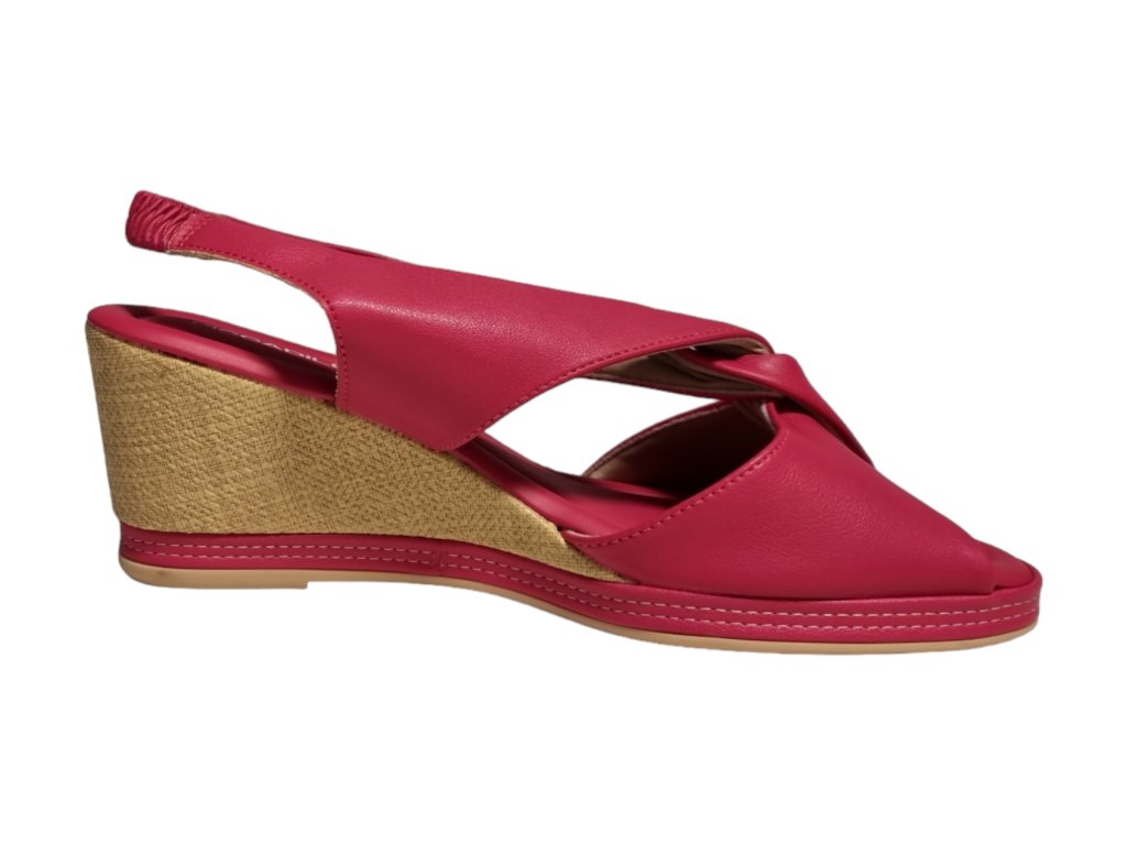 Letní sandály na klínku s páskem přes patu na potaženou gumu.