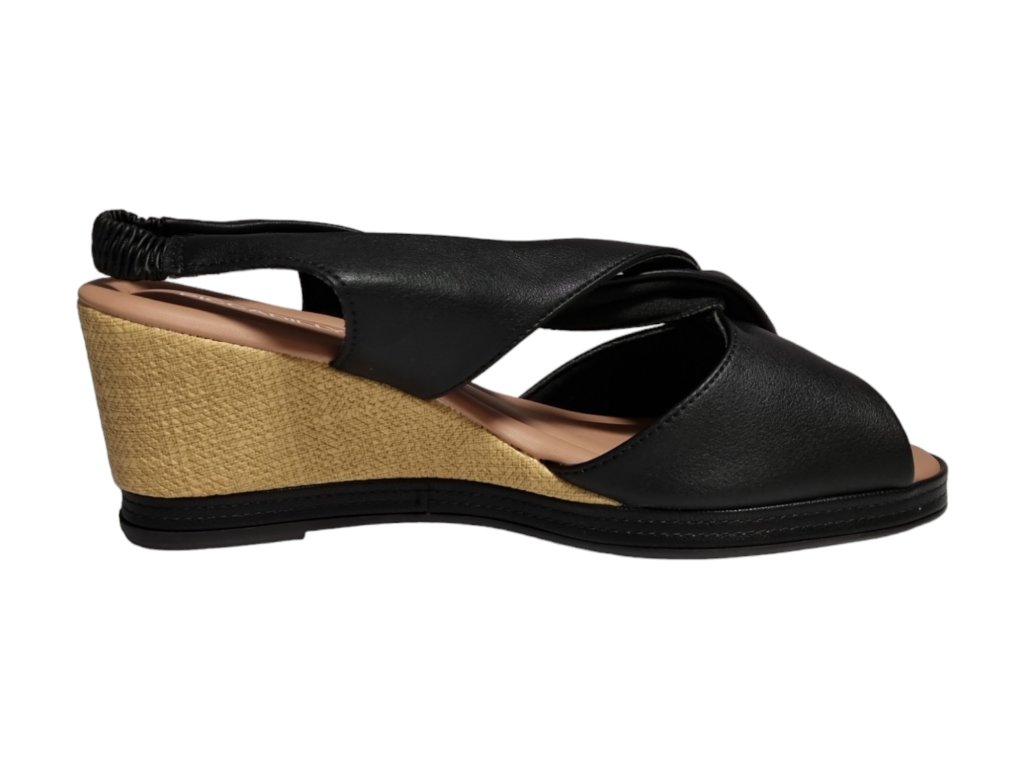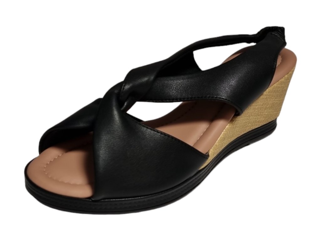 Letní sandály na klínku s páskem přes patu na potaženou gumu.