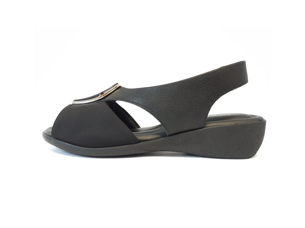 Dámské letní sandály s gumičkou za patou a ozdobnou sponou na špičce vhodné i pro nohy s halluxy a jinými deformitami.