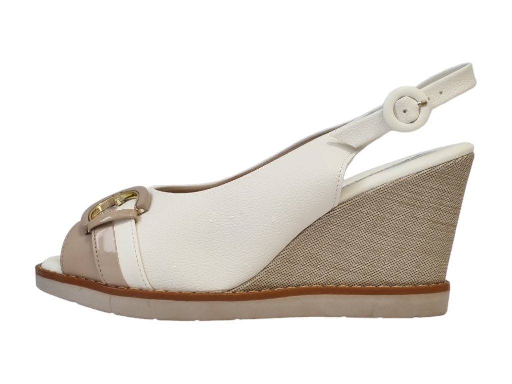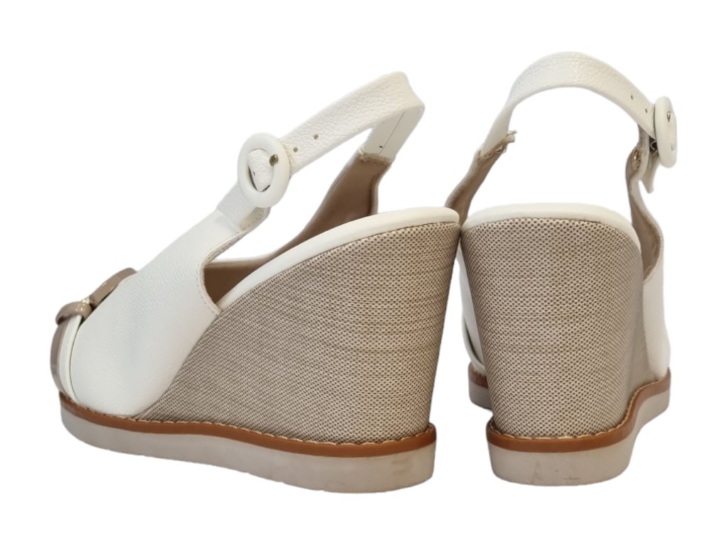 Letní elegantní sandály na klínku s nastavitelným páskem za patou.