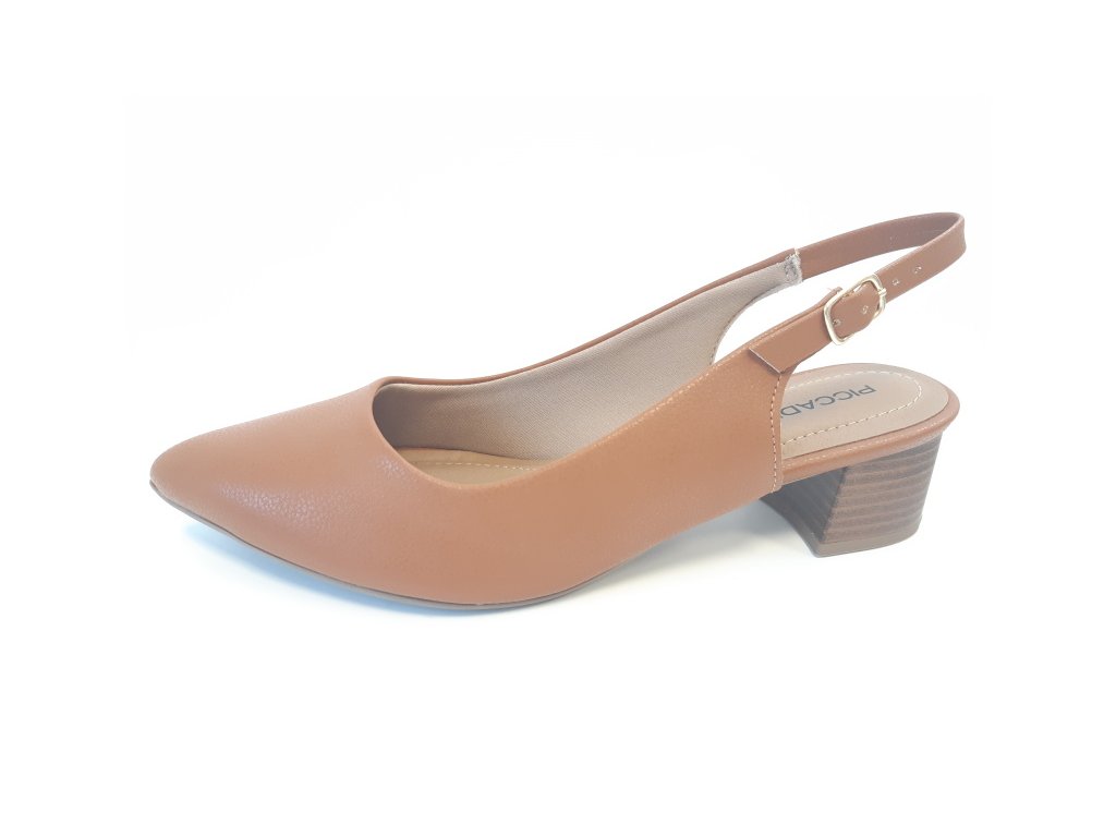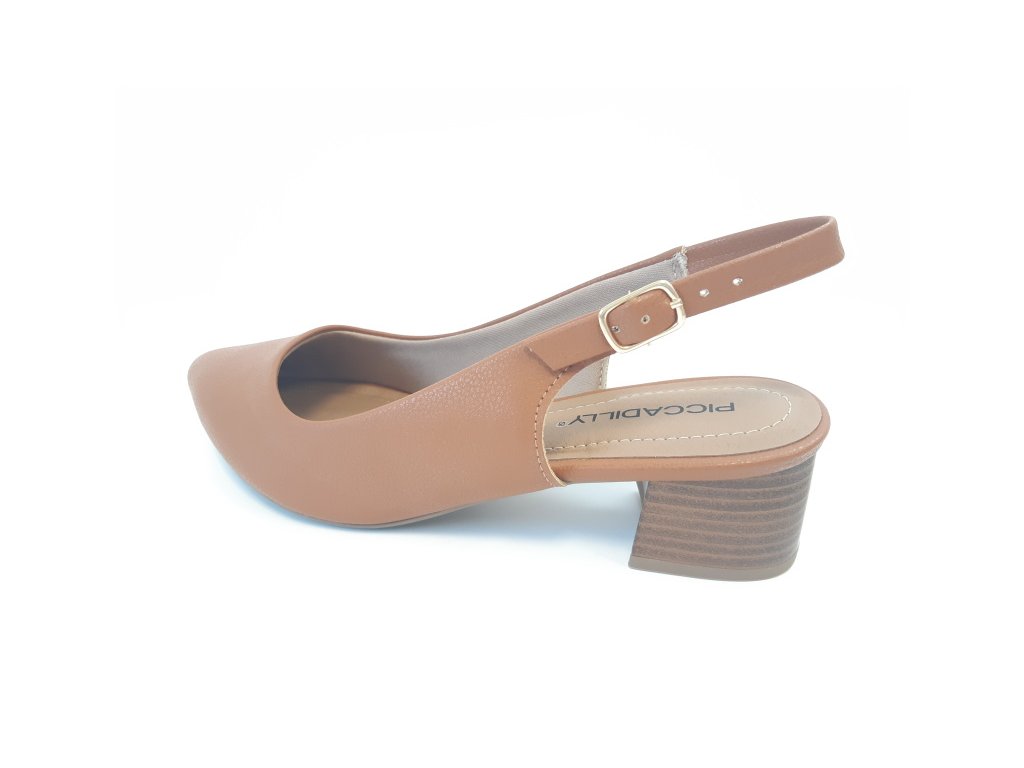 Pohodlné dámské sandálky Piccadilly na nižším širokém podpatku s uzavřenou špičkou a nastavitelným páskem za patou.