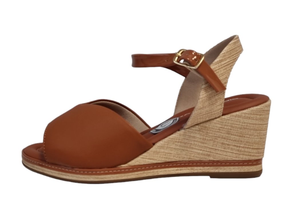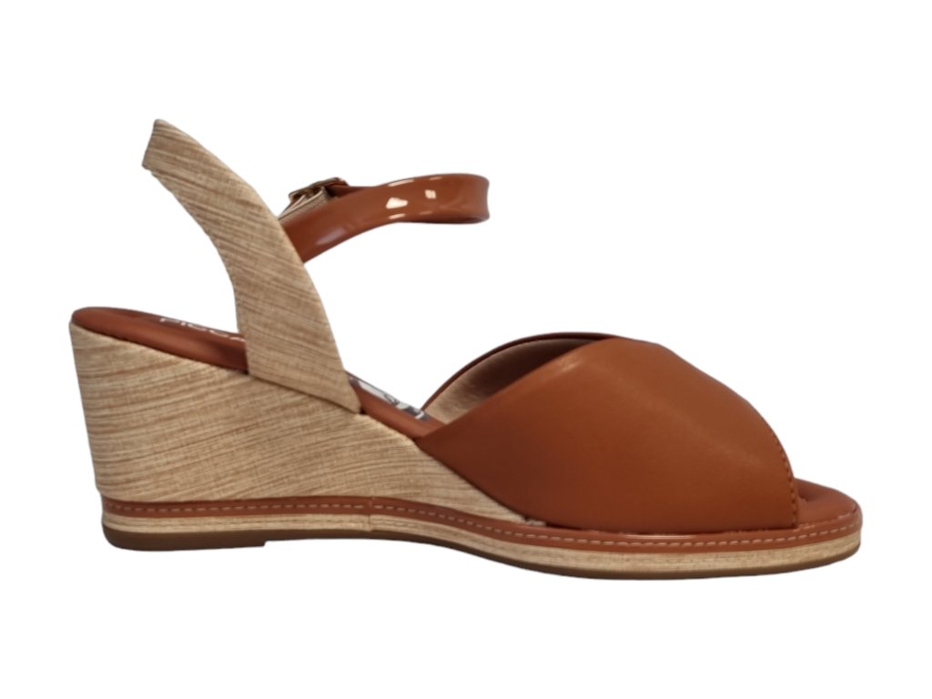 Letní sandály na klínku s nastavitelným páskem přes nárt, vhodné pro nohy s halluxy i jinými deformitami.