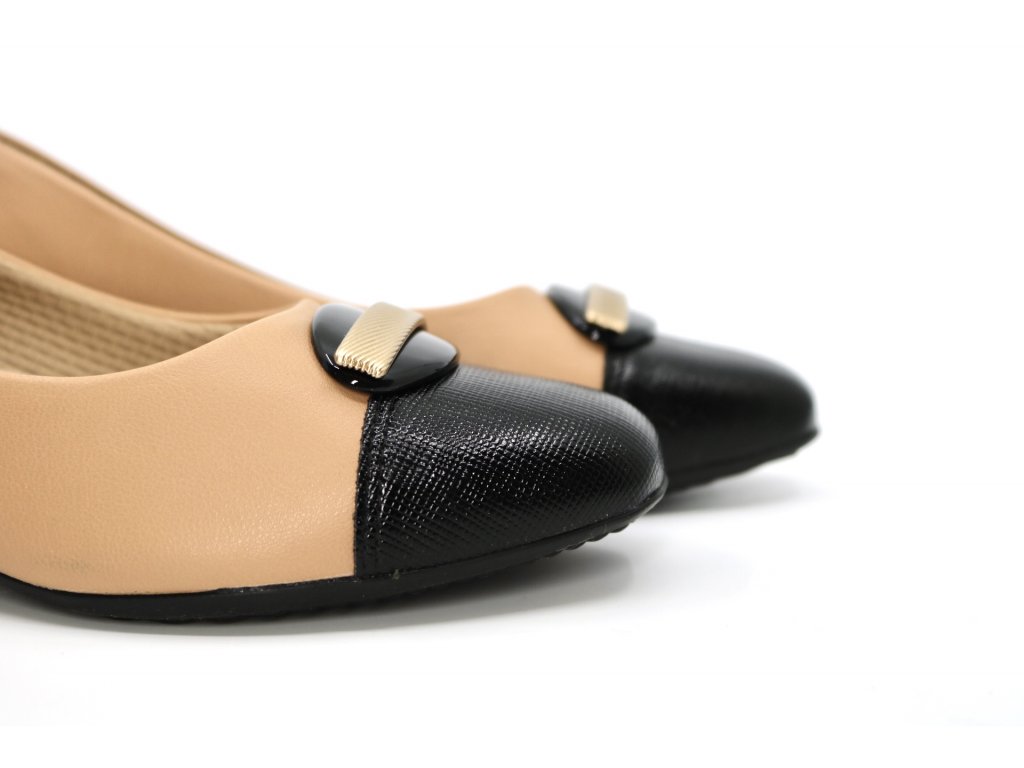 Piccadilly lodičky béžové, s černou špičkou a sponou
