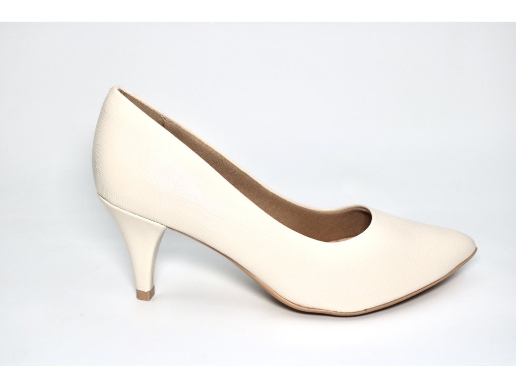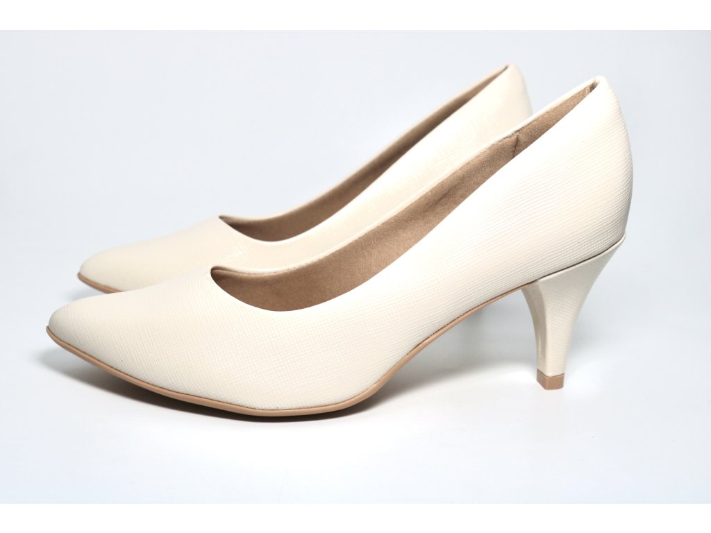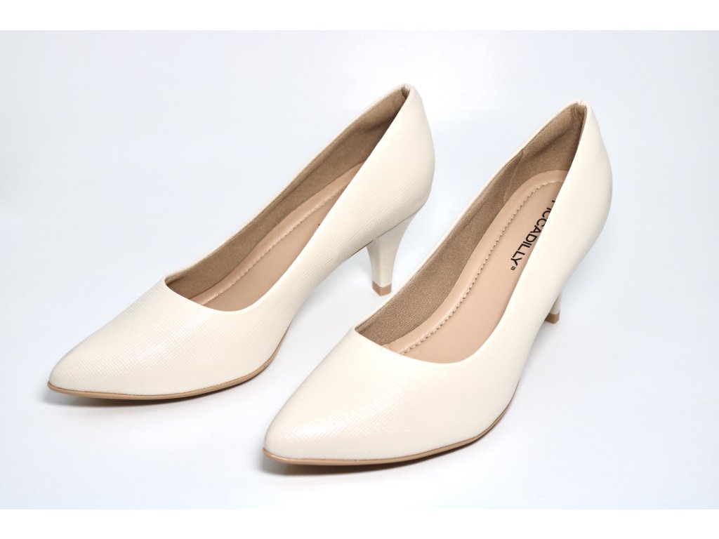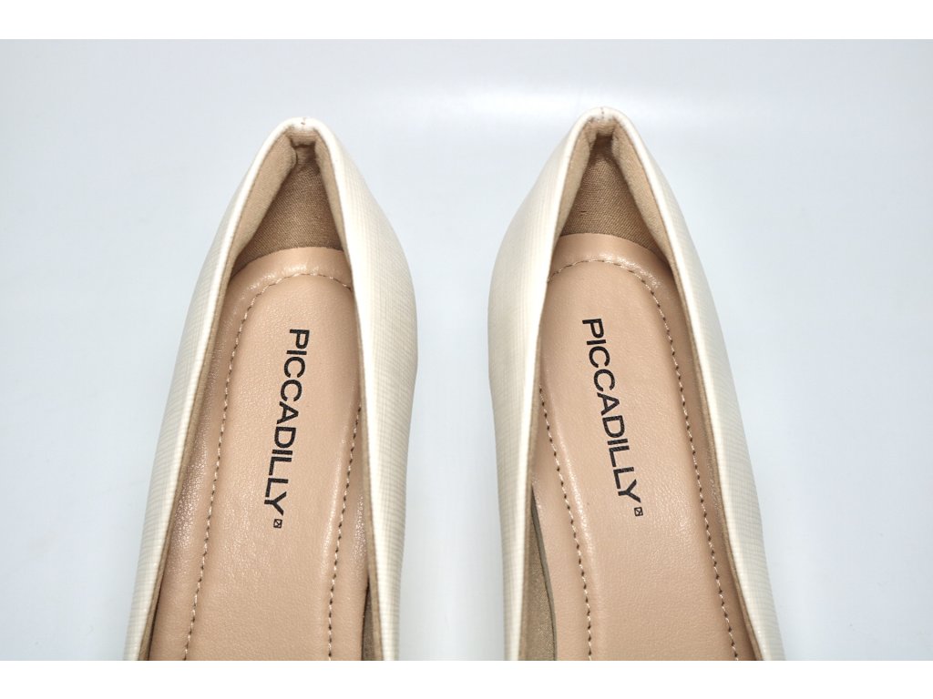 Dámské Piccadilly lodičky v trendy krémové barvě na úzkém podpatku. Botky jsou ozvláštněny jemným vzorkem s leskem. Využít je můžete i na Váš svatební den či jiné společenské akce nebo třeba na večerní romantickou procházku městem. Botky jsou dostupné ještě v matných barevných variantách: černé, bílé, tmavě modré a mandlové.