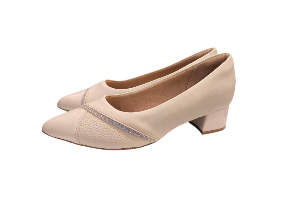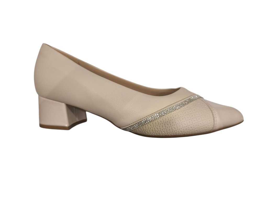 - barva světle krémová, štrasový proužek, lakovaný krémový podpatek a špička