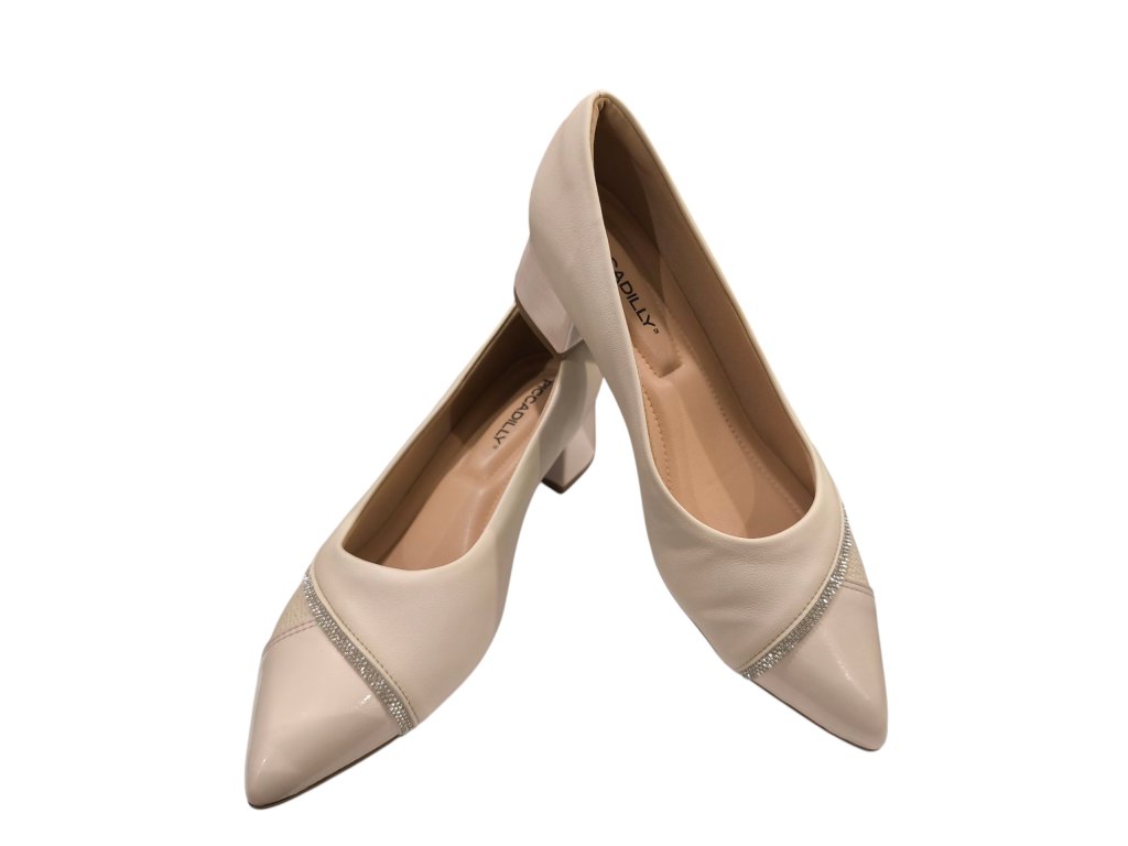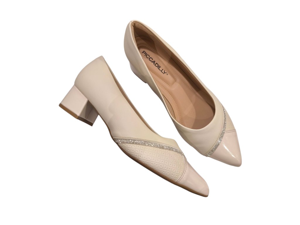 Dámské lodičky Piccadilly světle krémové, s lakovanou špičkou, podpatkem a třpytivým štrasovým páskem v přední části botky. Lodičky působí velmi elegantním, jemným dojmem, ale určitě zaujmou jednotlivými detaily. Navíc Vás překvapí svým pohodlím. Jsou ze strečového materiálu, tedy vhodné i na halluxy. Báječně budou vypadat k jeansům, ale využijete je i na společenské příležitosti.