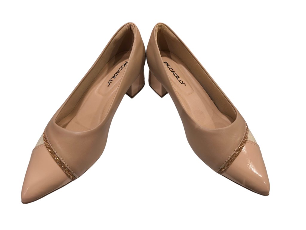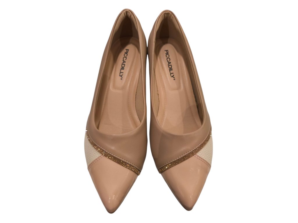 Dámské lodičky Piccadilly tělovo-růžové, s lakovanou špičkou, podpatkem a třpytivým štrasovým páskem v přední části botky. Lodičky působí velmi luxusním, přesto jemným dojmem. Navíc Vás překvapí svým pohodlím. Jsou ze strečového materiálu, tedy vhodné i na halluxy. Báječně budou vypadat k jeansům, ale využijete je i na společenské příležitosti. Jen počítejte s tím, že s nimi budete nepřehlédnutelné...! Jste na to připravené?