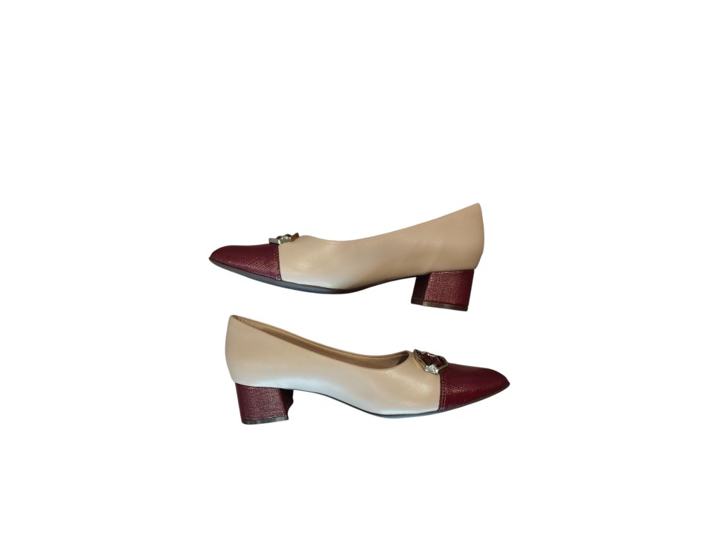 barva tělovo-vínová, vínová špička a podpatek, zlatá spona