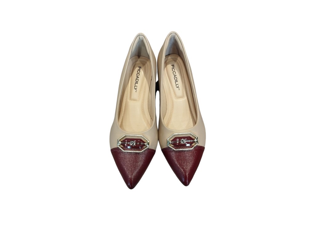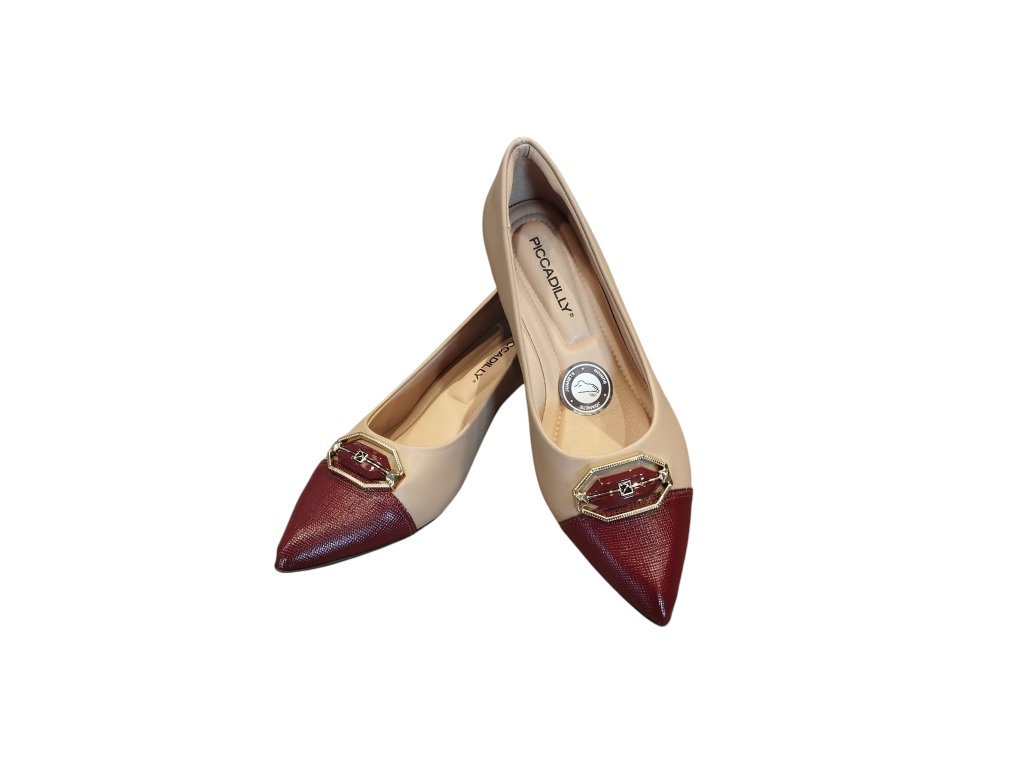 Piccadilly lodičky tělovo-vínové se zlatou sponou