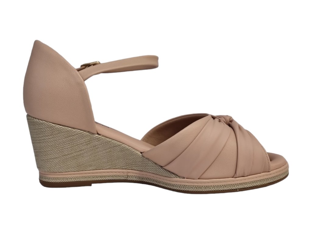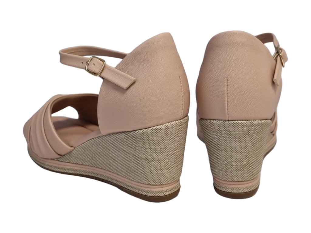 Letní sandály na klínku s plnou patou a s nastavitelným páskem přes nárt, vhodné pro nohy s halluxy i jinými deformitami.