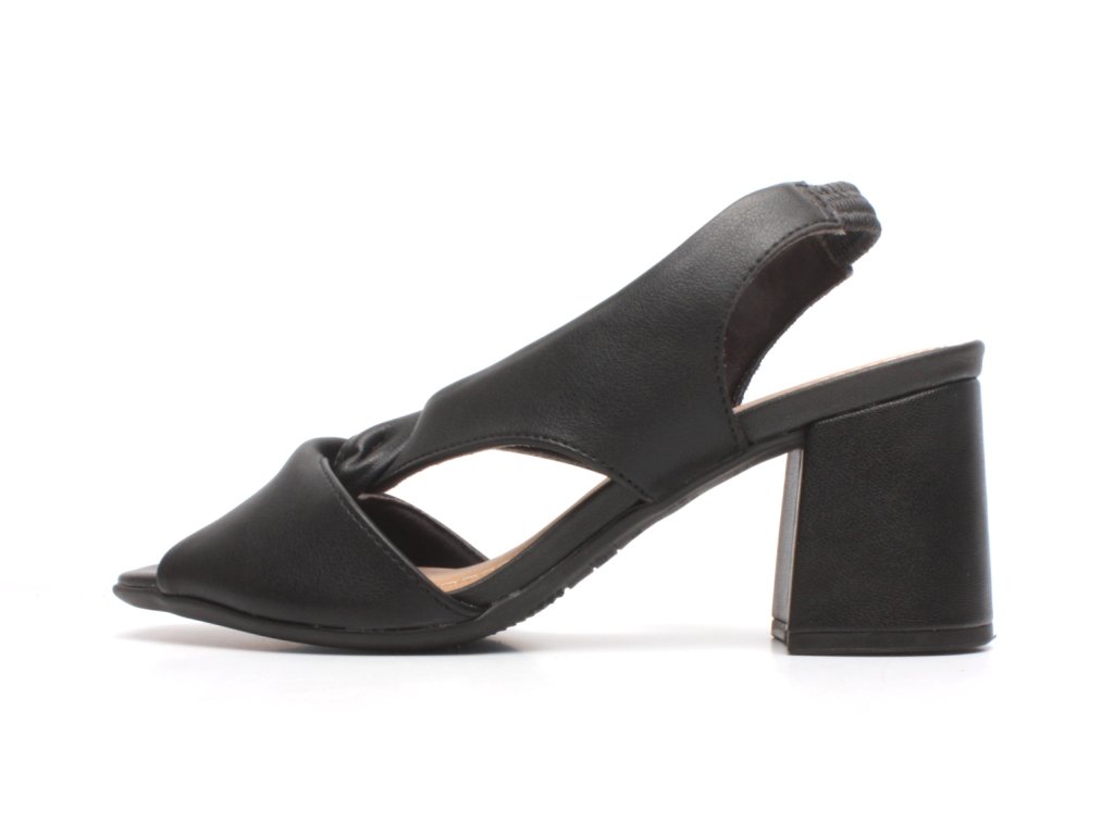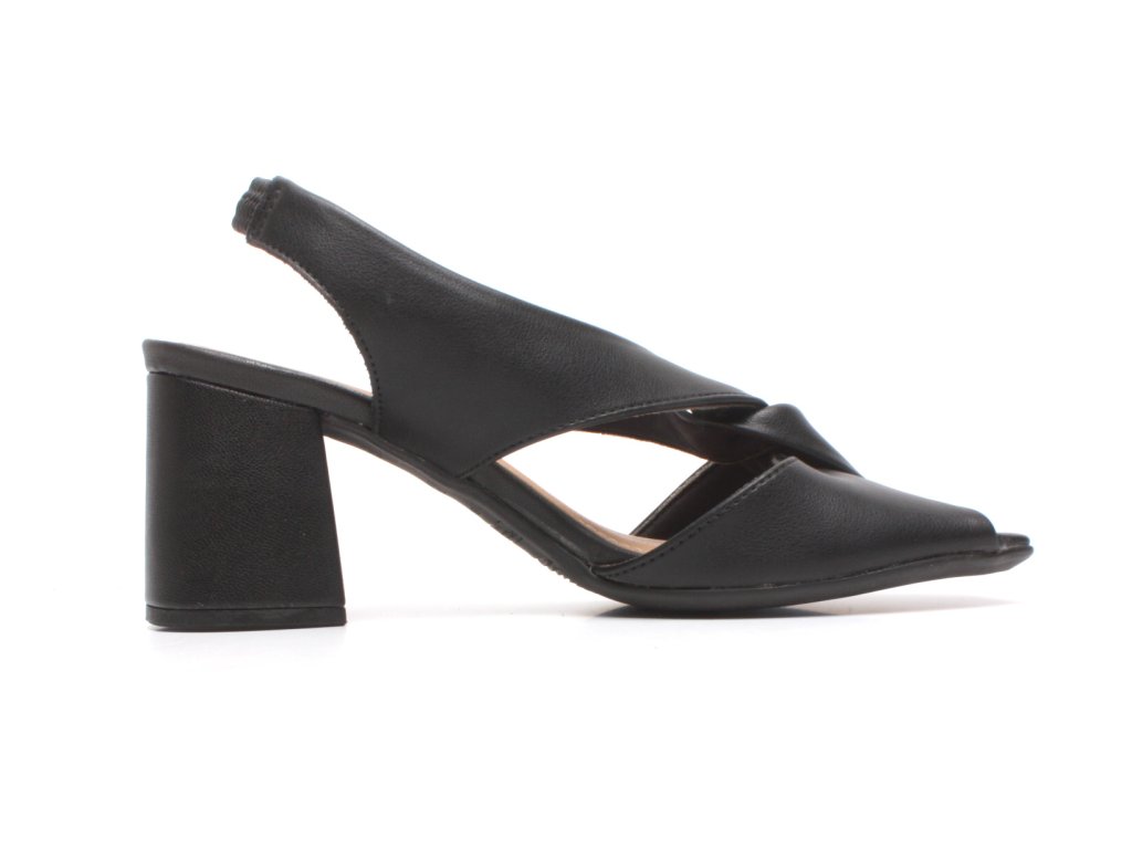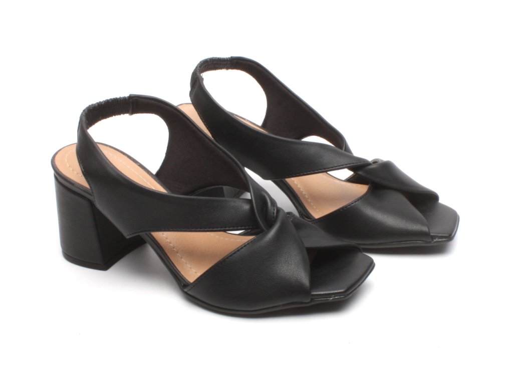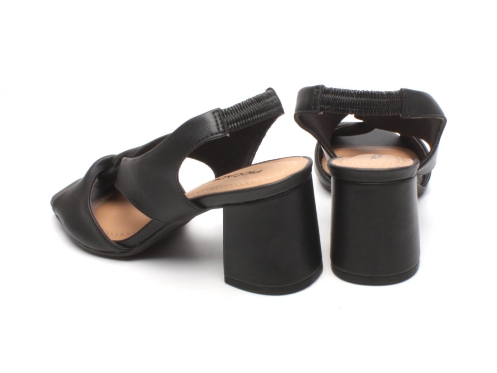 Pohodlné černé sandálky na širokém podpatku s gumovým páskem za patou.