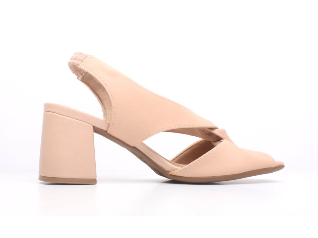 Pohodlné růžpvé sandálky na širokém podpatku s gumovým páskem za patou.